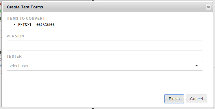 2) Click on Create Test Forms and select the Test and Use Cases you want to include (either manually or via Search or MRQL):