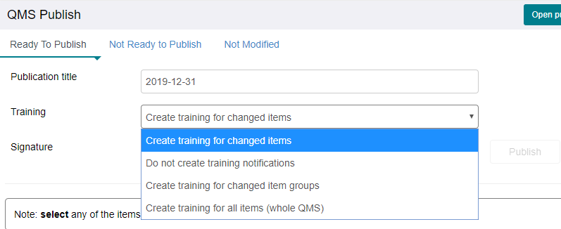 create training for changed items (default): this will create a training for a procedure or work instruction if there was a change to it